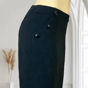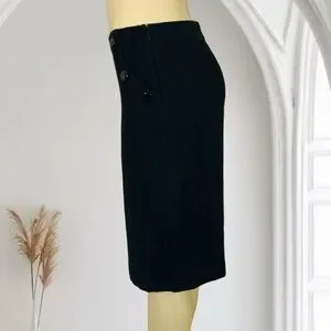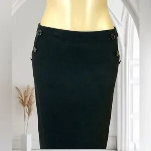 This sophisticated J. Crew Factory skirt is a timeless addition to any wardrobe. The wool fabric drapes beautifully and offers a flattering fit. Three buttons on each hip add a touch of classic detail. Side zipper. Faux pockets provide a polished look. Pair this versatile skirt with a blouse for work or a sweater for a more relaxed occasion.