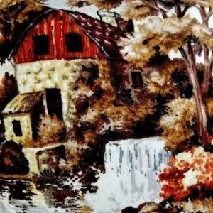 Velvetty Vtg Farm Fall Scene Square Throw Pillow