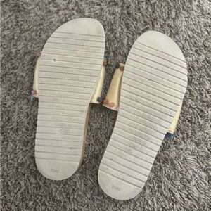 TOMS PARADISE GOLD SHIMMER POM POM SANDALS