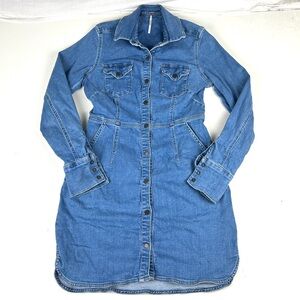 Free People Women’s Blue Denim Mini Dress size Small Cotton Stretch Blend