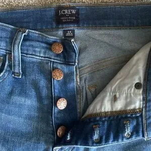 High rise skinny. Raw hem. Size 24. Hardly worn. Medium wash. Four buttons.