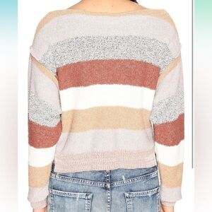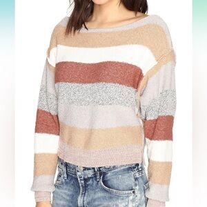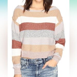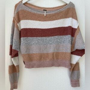 Free People Women's Candyland Striped Ivory Cropped Pullover Sweater Size Small