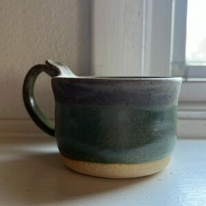 Handmade pottery coffee mug glazed neutral green gray tone