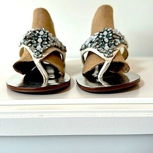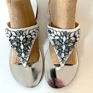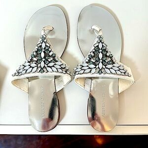 NWOB!!Beautiful White with Beaded Top Thong Sandals