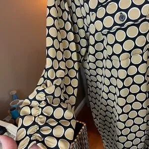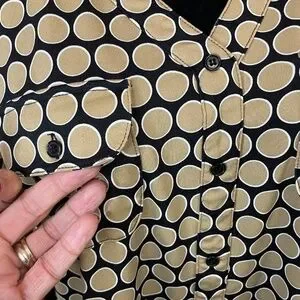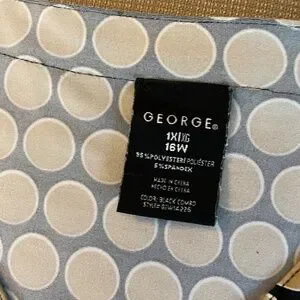 🎁Women's George Top, 3/4 sleeve, SZ 16W or 1X. Lovely, versatile top for work, with jeans or leggings! Soft Polyester, med. weight (not thin and clingy), makes this a great wash and wear, no ironing needed, for ease and travel! Black background color with tan dots. Good pre-loved condition with no known flaws. *The close up pics show truer colors.