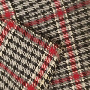 Two small blemishes. One on the left lapel and the other is on the left cuff. Noticeable if looking for them, otherwise difficult to see because of the plaid pattern. See pics.