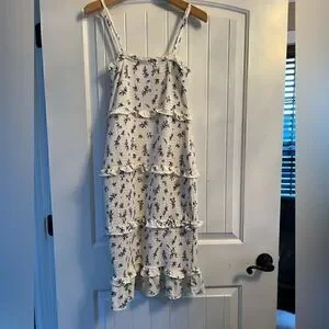 This GORGEOUS tiered dress with floral pattern is so fitting! Midi to maxi in length