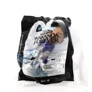 Oh, look! It's Shuri, the tech genius from Wakanda, trapped in a Happy Meal bag. Dip her in water and watch her vibranium color change. Who knew saving the world could be this fun?