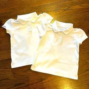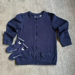 We used the clothing for Montessori PreSchool which had a dress code of Navy and White. All in very good shape…Since they are dark colors there is a bit of laundry fade, but would serve well for an entire school year. All pieces are just adorable! The sweater, of course, is a 4T to provide under clothing space. Pardon the evening lighting. One owner~