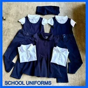 SCHOOL UNIFORMS-NAVY/WHITE 10Pc. SWEATER,PANTS,JUMPERS,SOCKS,DRESS, TOPS,SHORTS