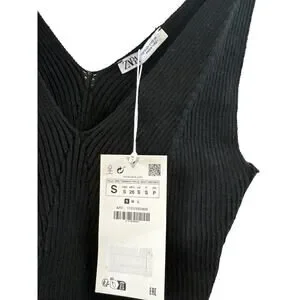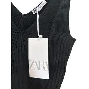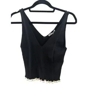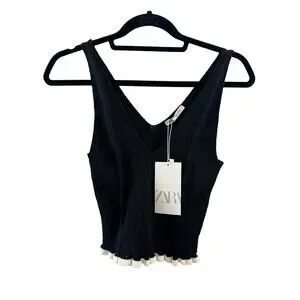 Zara Knit Crop Top Black with Scalloped Bottom Womens Size Small NWT
