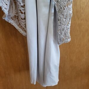 B. Darlin silver sequined v cut front, low cut back, prom/gown. Size 3/4