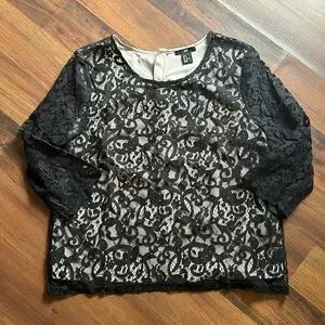 H & M Nude Black Lace Overlay Top size Medium with 3/4 sleeves