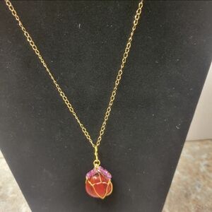 Gold and Red Lotus Bud Style Necklace