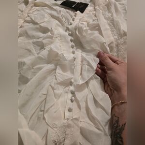 Brand new with tags The Kooples Silk Ruffle Trim blouse in white. Wrinkled but otherwise in new condition. Long sleeve button down airy flowy. Size 1 or US size small medium.