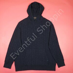 Brooks Brothers Cotton Cable Knit Hoodie Sweater in Blue Size 2XL
