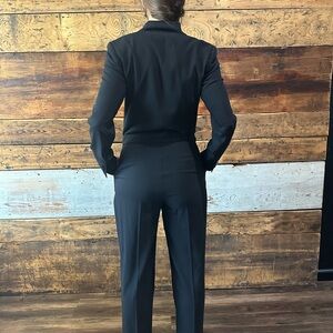 Gorgeous Polo Ralph Lauren Women’s Wool Blend Stin Trimmed Tuxedo Style Jumpsuit. Polo Ralph Laurens’s penchant for reimagining menswear tailoring for the modern woman.