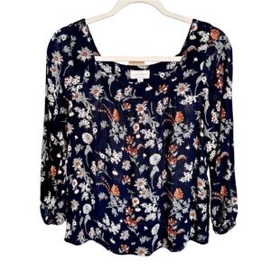🍀Lucky Brand Smocked Square Neck Top Small *EUC! Navy/Floral