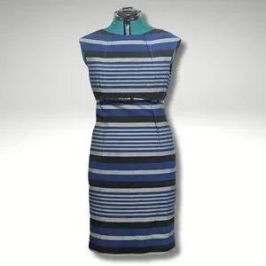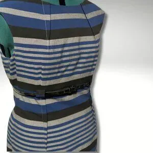 Calvin Klein Cap Sleeve Striped Belted Sheath Dress sz 12