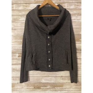 Ann Taylor Cowl Neck Button Up Cardigan Sweater Shirt Gray Large Long Sleeve