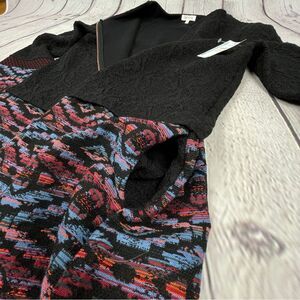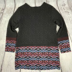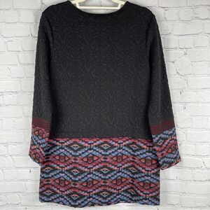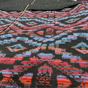 Black floral textured body and embroidery / tapestry trim at the bottom and sleeves