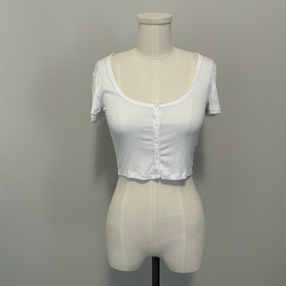 Aritzia Sunday Best Holly Top Button Front Cropped Rib T-Shirt White Crop Top S