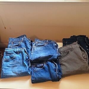 There are 6 pairs shown in the pictures, but this is for a lot of 5. The pair of 34 x 31 in the picture is not included.