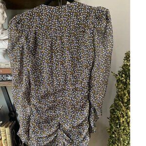 ASTR the Label Black Yellow Floral Ditsy Ruched Puff Sleeve Mini Dress