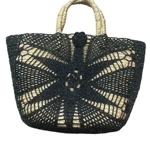 This beautiful, coldwater creek, features double handle with 5 inch drop, making it easy to carry around. The bag is made out of straw, exterior has a gorgeous crochet design in black metallic that gives a stylish and chic look.