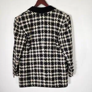 Vintage Escada Plaid Houndstooth Blazer Velvet Collar Classic Wool Sz 42