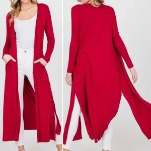 S-3X Knit Rayon Spandex Long Body Duster Cardigan