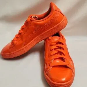 Puma Basket Neon Orange Patent Leather Lace-up sneakers (size 6.5C)