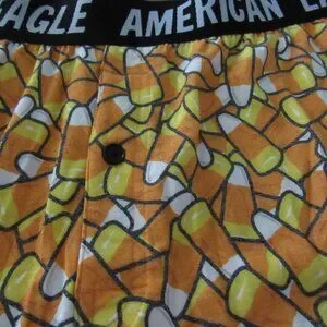 AMERICAN EAGLE ULTRA SOFT BOXERS SHORTS. MEN'S LARGE WILL FIT WAIST SIZE 35"-38". Regular length, 4" inseam hits mid thigh, New antimicrobial fabric helps fight odors, while keeping you dry & comfortable, Candy Corn design, Super soft, brushed anti roll logo waistband, Button fly. Roomy silhouette allows for maximum flexibility and comfort without being constricted. Candy Corn pattern.