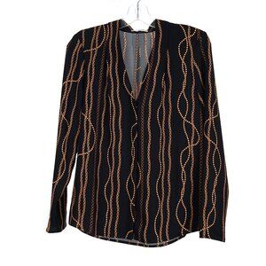 Aritzia Babaton Button Front Power Blouse Black Gold Women's Small NWT