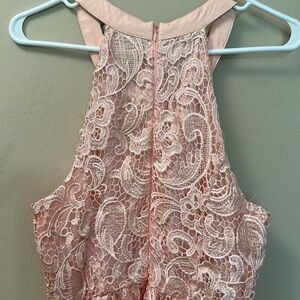 San -joy size med new with tag. Sleeveless. . Beautiful lace overlay p2p-16 1/2. Length is 36” has a little peeling around the neck. Not noticeable