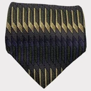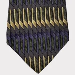 Beautiful men's necktie in black, gold, purple and green. Made in Costa Rica. 100% Silk. Dry clean. Due to light & screen variations, colors may vary slightly from the images