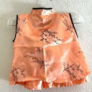 Vintage Silky Jolly Baby Girl's Chinese Orange Peach & Black Suit 3T Mandarin Asian 2 Piece Outfit Top Shorts