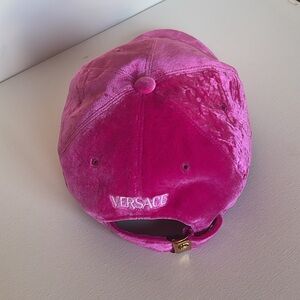 NWT VERY VERSACE VELVET PINK 59 SLIP-ON ADJUSTABLE BASEBALL CAP MADE IN ITALY
