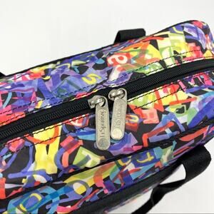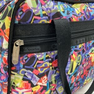 Lesportsac Medium Travel Bag Vintage Multi Logo Print Duffle Weekender