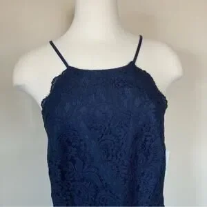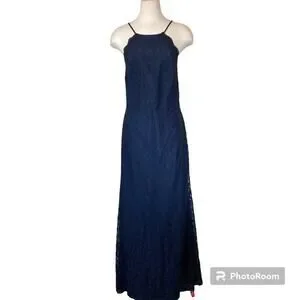 Dessy Collection NWT Halter Cross Back Lace Trumpet Midnight Dress Size 14