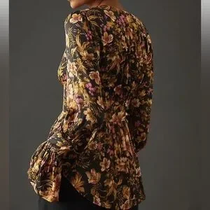 NEW Anthropologie Deep-V Floral Tunic Blouse-Size Small