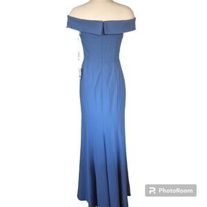 Dessy Collection NWT Off Shoulder Trumpet Gown Front Slit Larkspur Blue Size 0