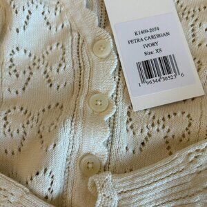 NWT LoveShackFancy Cotton Knit Petra Bow Pointelle Cardigan XSmall Ivory Cream