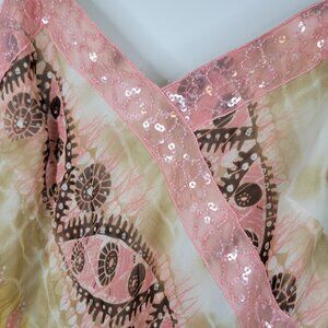 Joseph Ribkoff Pink Midi Slip Dress Sz 8 V-Neck Sleeveless Sequin Fairy Y2K Lace