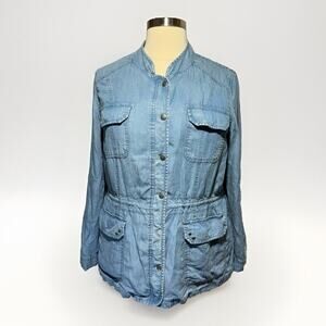 Style & Co Utility Jacket Roll Tab Sleeves Women’s Size XL Blue Chambray