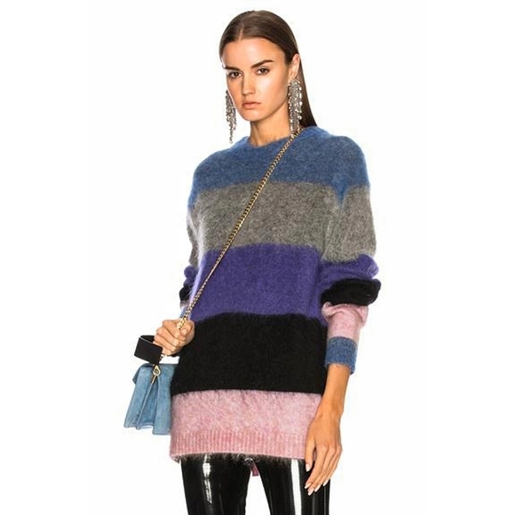 Acne Studios Albah Multi Stripe Mohair Wool Oversized Sweater