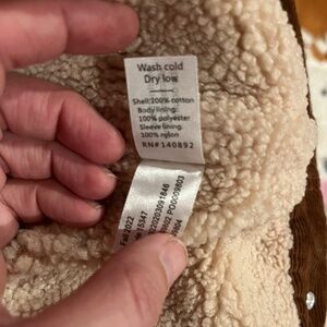 @d_le_ yes! The shell is 100% cotton. The interior (faux shearling) is 100% polyester but soft. The sleeve lining is 100% nylon. I will upload a picture of the tag with these details.