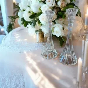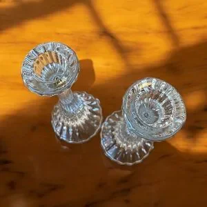Gorgeous, heavy pair of 1950s Vintage leaded-Crystal candle sticks. Super chic!