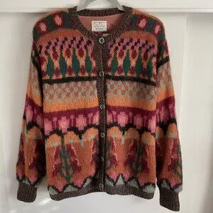Susan Bristol Vintage 1990 Knit By Hand Wool Blend Button Cardigan Sweater Size M