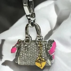 Juicy Couture Y2K Daydreamer Pave Rhinestone Purse Charm with Pink Bows - FAB